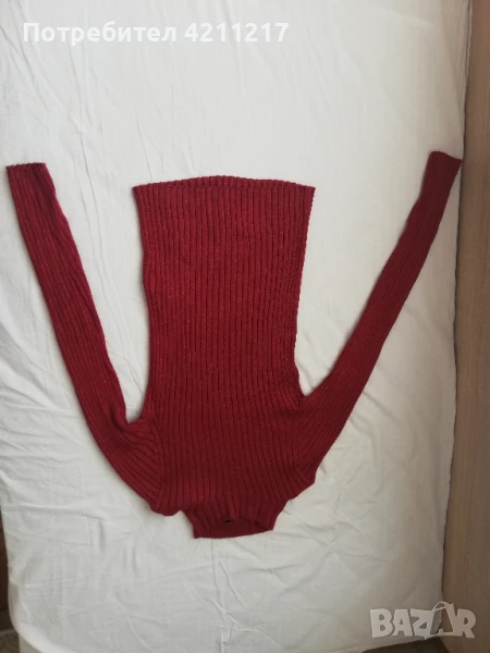 Дамска блуза с дълъг ръкав, размер S, плетена( разтяга се чо тялото). Червено със ситно ламе.