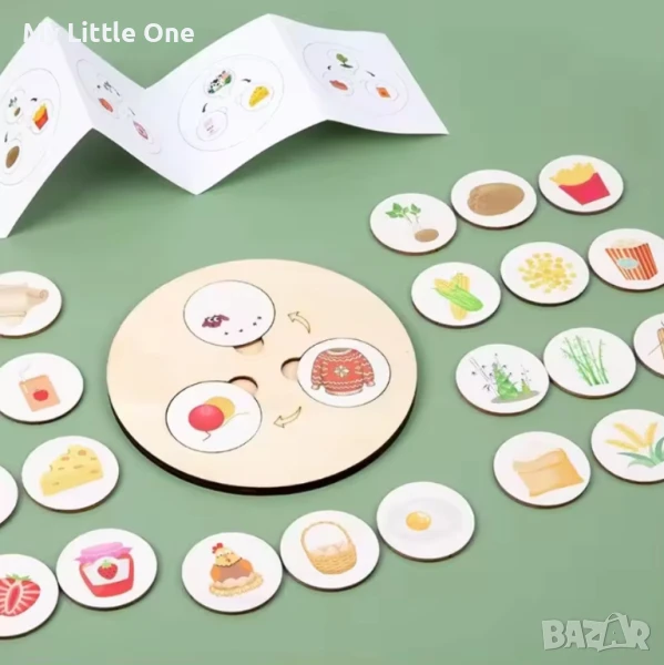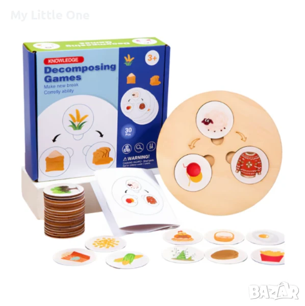 Играта включва 30 дървени части, всяка от които илюстрира етапите от жизнения цикъл на различни предмети и същества. Децата ще научат за естествените трансформации и процесите на растеж по забавен и интерактивен начин.