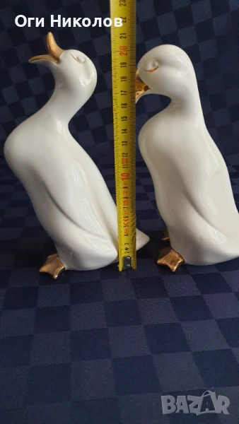 Чифт порцеланови патици с позлата.Височина - 21 см.