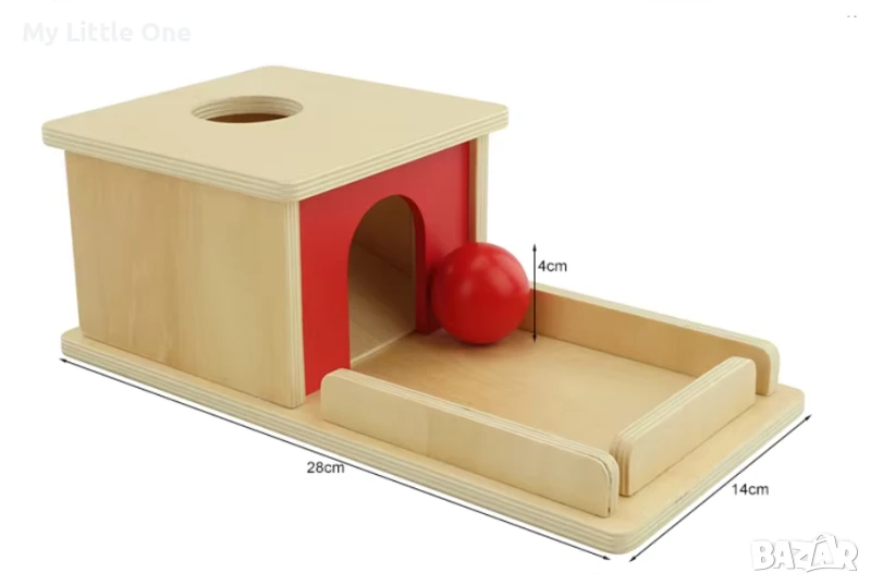 Дървена Монтесори кутия с поднос и топче → Обява 50998231