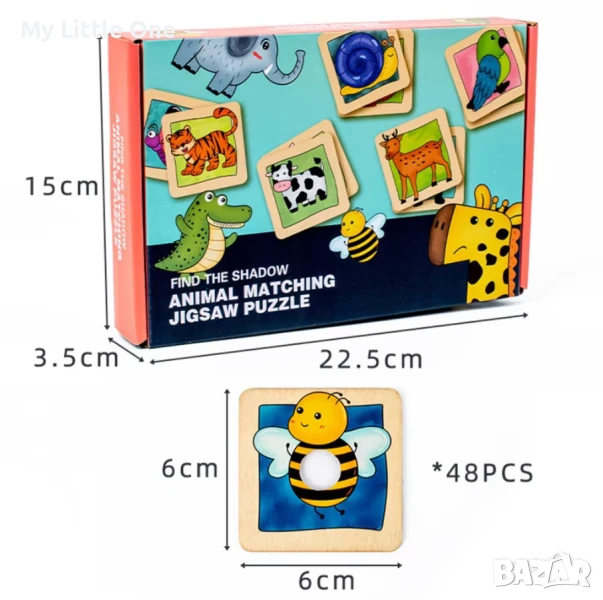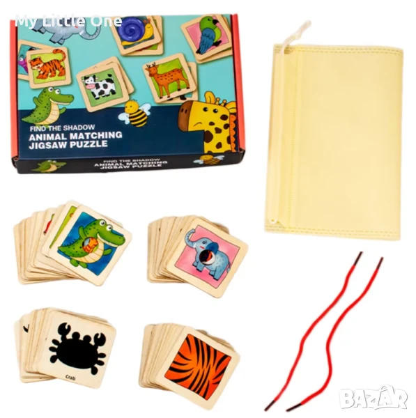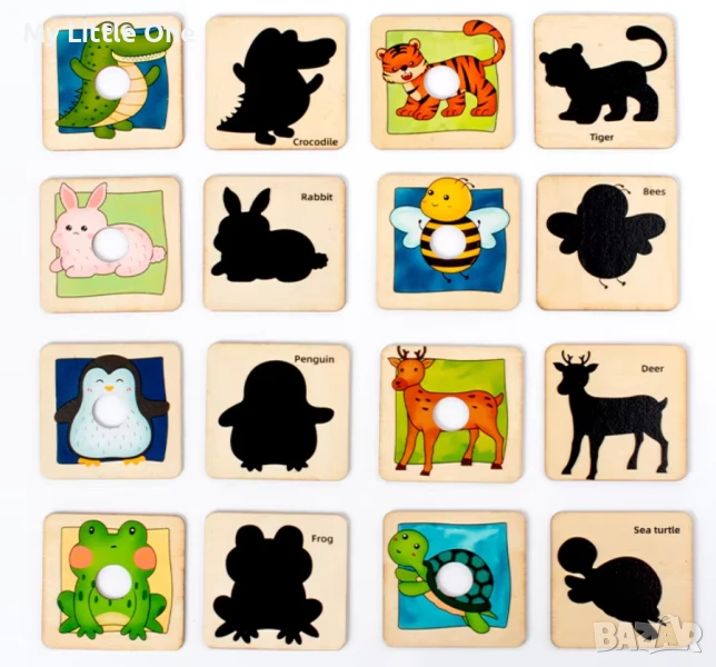 Тази игра, изградена според принципите на Монтесори, помага за развитието на логическото мислене, въображението и разпознаването на животни. Освен всичко това, играта помага на когнитивното развитие на децата чрез упражняване на разпознаване и съпоставяне.