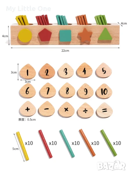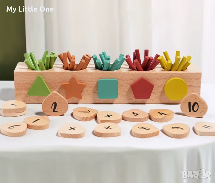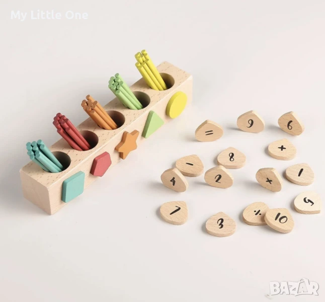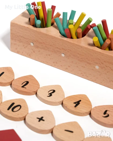 С дървена основа и магнитни числа отпред, тази играчка предлага увлекателен начин за практикуване на прости математически операции.