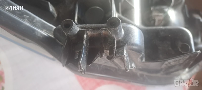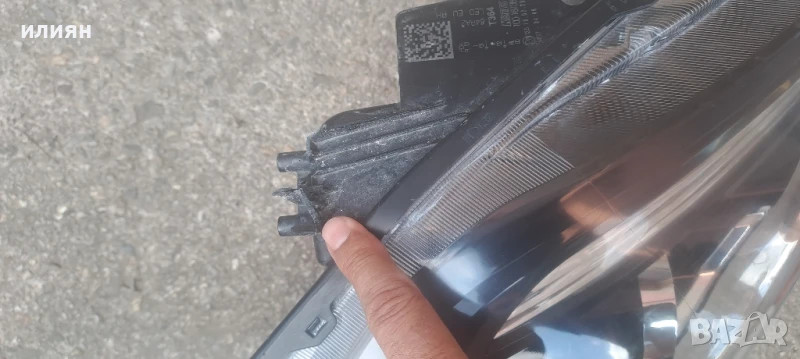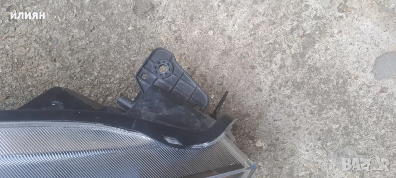 оригинална част перфектно състояние, счупено ухо от горната страна от към калника-вижда се на 4 и 5та снимка. иначе е ОК. може да се ползва ремонтен комплект или да се залепи от другия фар