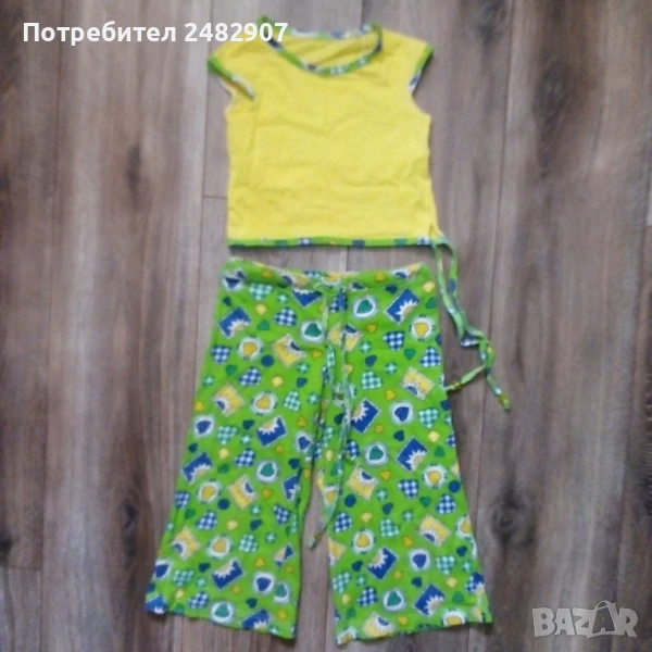 Детски комплект за момиче в жълто и зелено. Съдържа 100 % памук.