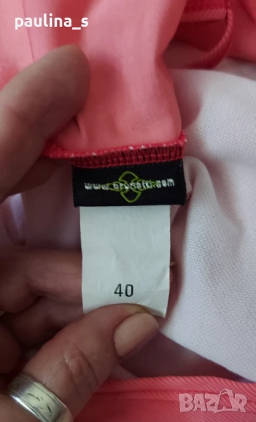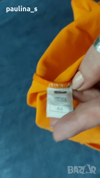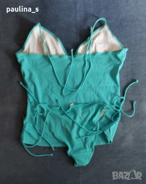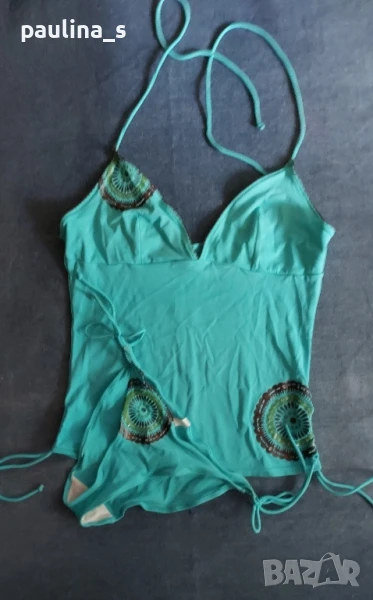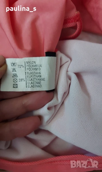 1️⃣. M / XL - "Brunotti". Цената е крайна 49,99лв / 25 евро. Маркови Танкини. Дамски банки костюм от две части. Горната част представлява бюстие с къдри на деколтето, а долната изрязани бикини. Презрамките не се регулират! Цветът е "Праскова" с петнист раиран ефект.