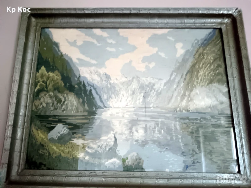 (използвани конци Мулине и ДМЦ) с общ размер с рамката 29/37см (27/35см вътр.).