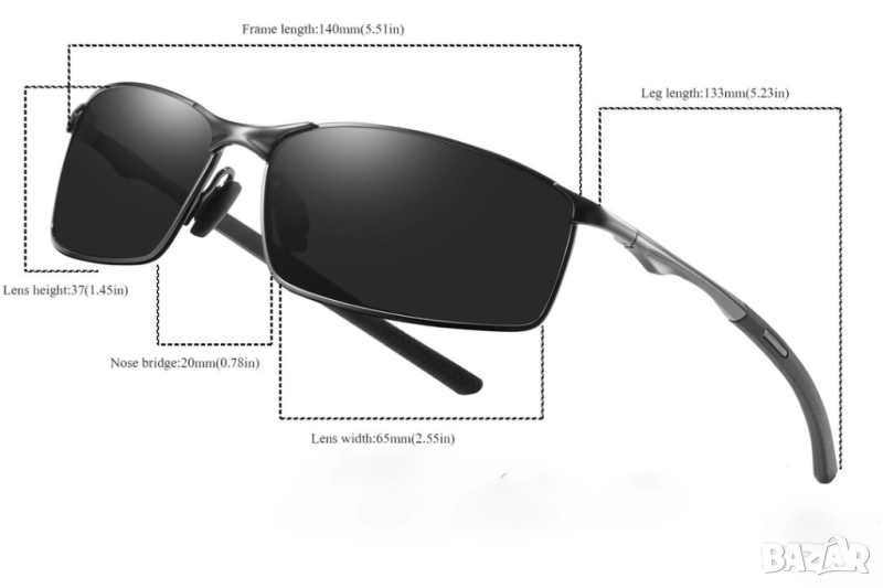 Слънчевите очила са изработени от TAC лещи, които са здрави, устойчиви на надраскване и удар.