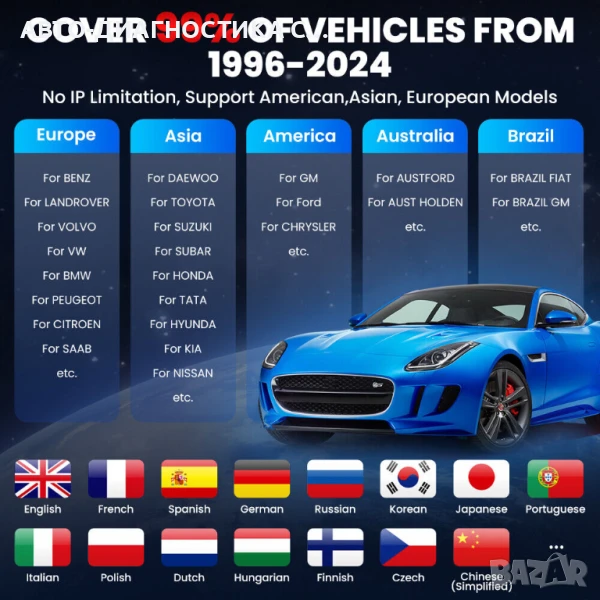 Launch X431 PRO3S+V5.0. Обхвата, на диагностиката е, за автомобили, от 1996г, до 2024г.