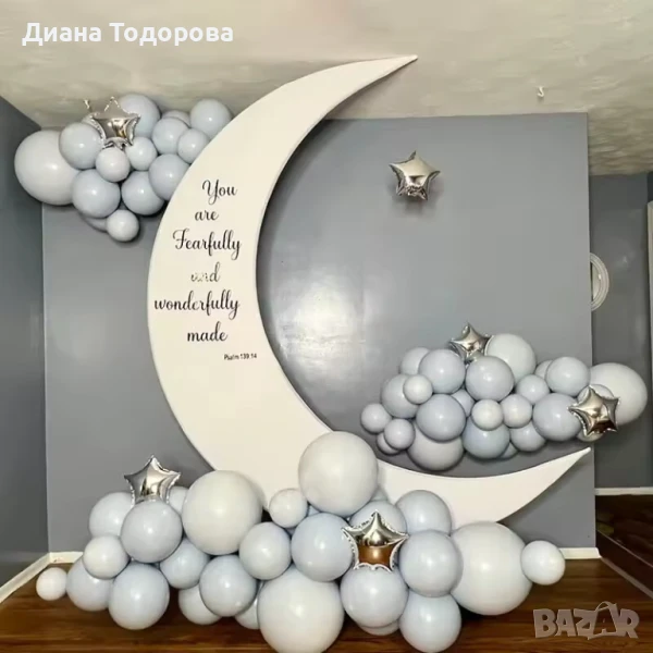 Метална арка луна за декорация на празненства, рождени дни, кръщенета, партита и др. Частите са удобни за работа и лесно преносими в собствен калъф.