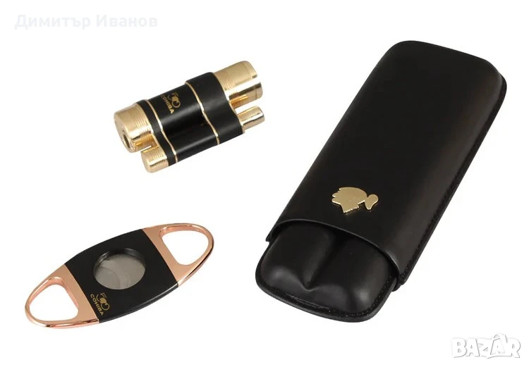 Cohiba подаръчен комплект от запалка, ножица и калъф за 2 пури → Обява 50999499
