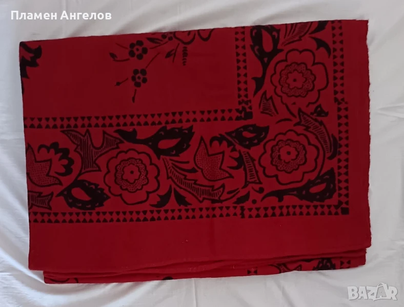 Вълнено одеало отпреди стотина години. Рочно тъкано на домашен стан от домашна, ръчно предена вълна и боядисвана с естествени багрила. После е щамповано само от едната страна. Лично мое е, съхранява се в гардероб със други дрехи. Няма повреди, забележки или дупчици. Не е купувано от пазарите. Във безупречно състояние. Размери :дължина 210м.и ширина 140м.