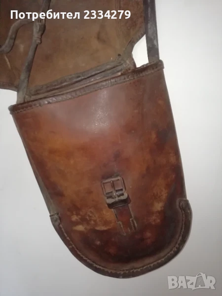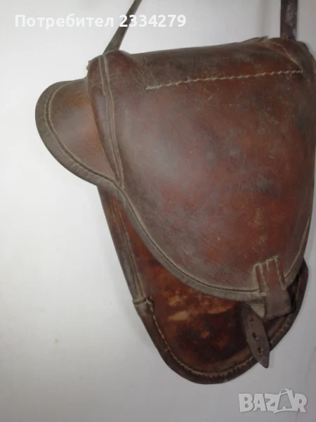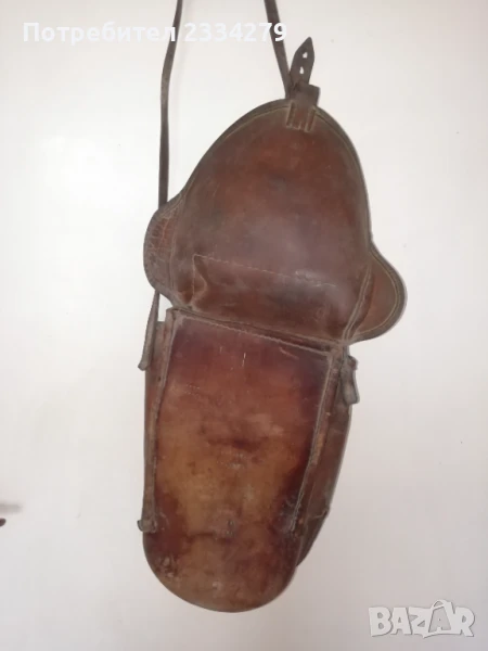 Английска военна чанта използвана в кавалерията за носене на подкови за коне и други атрибути. Изработена ръчно от дебела естествена кожа, има жеглосан щемпъл, размери на чантата 37х30см. Рядко срещана вече военна вещ преди първата световна война. Много добре запазена, без скъсано или разшито, уникат за годините си, вещ за колекционери и ценители на военни вещи.