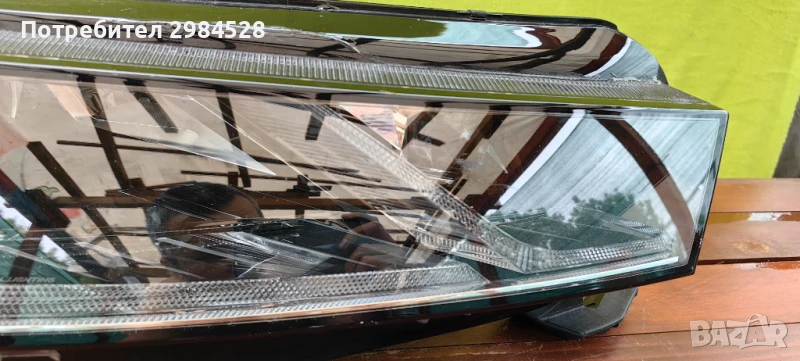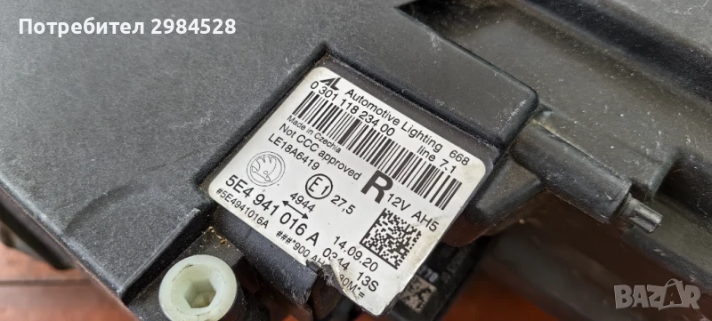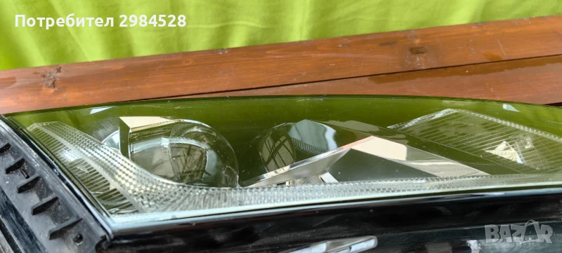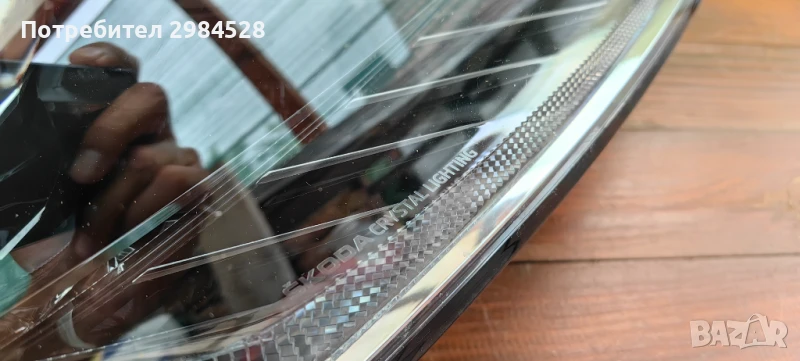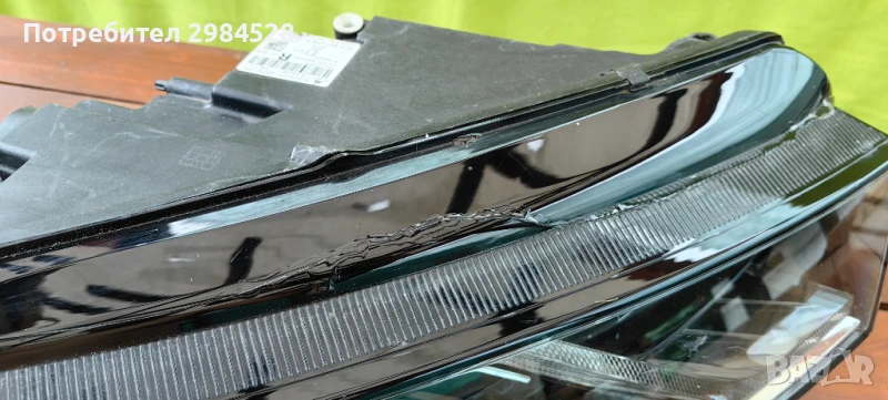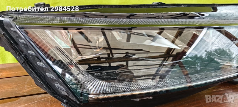 Оригинален десен фар за Skoda Octavia 4 - Full LED версията с лупи, корпус и захвати без забележки, стъклото има поправена (залепена) пукнатина, която е в горната (черната) част на стъклото и остава скрита при монтиран фар.