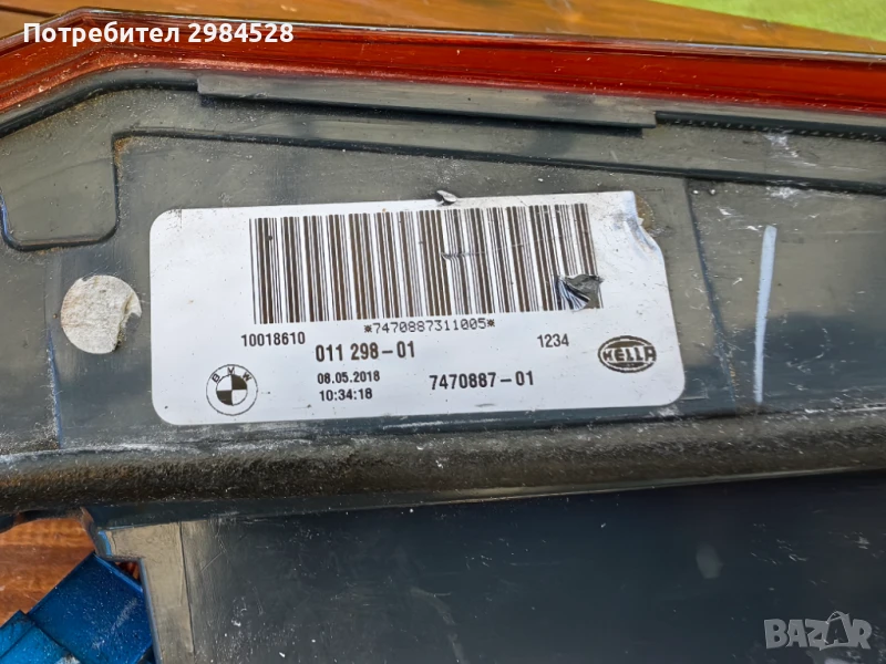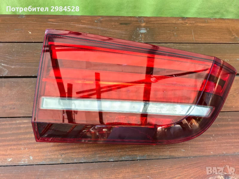 Оригинален ляв вътрешен стоп за BMW X5 F15 - Със козметична забележка - поправена със червена смола, изцяло козметична. Всичко по стопа работи нормално и е напълно годен за употреба. Европейски с оранжев мигач.