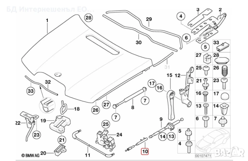 Жило за преден капак BMW, 7 E65 E66, Основно, Двигателен отсек