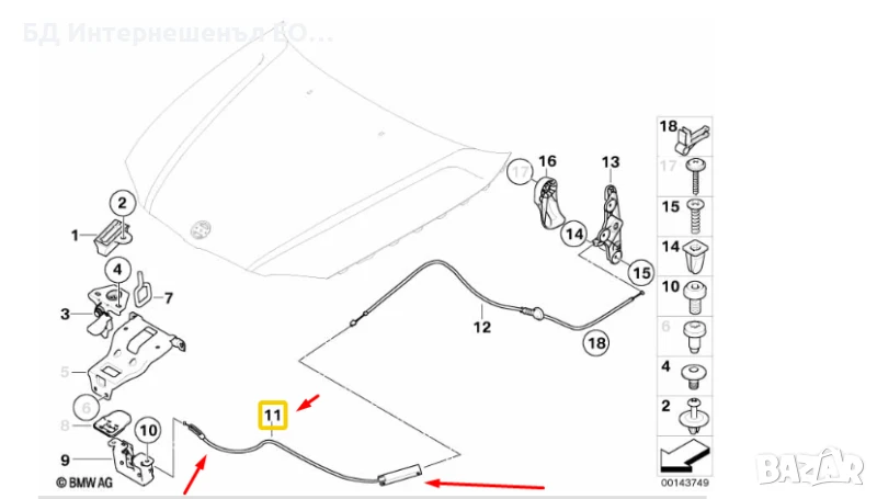 Жило за освобождаване на преден капак двигателен отсег BMW, 3 E90 E91,