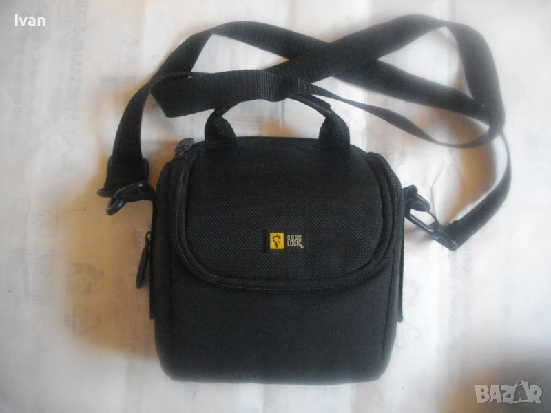 Чанта на камерата - платова, оригинална, с дълга регулируема презрамка и кожена дръжка за носене, с множество отделения и джобове. Чантата е като нова, без никакво протъркване на плата.
