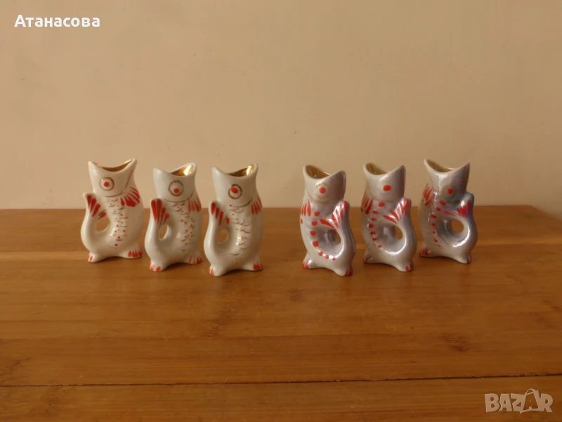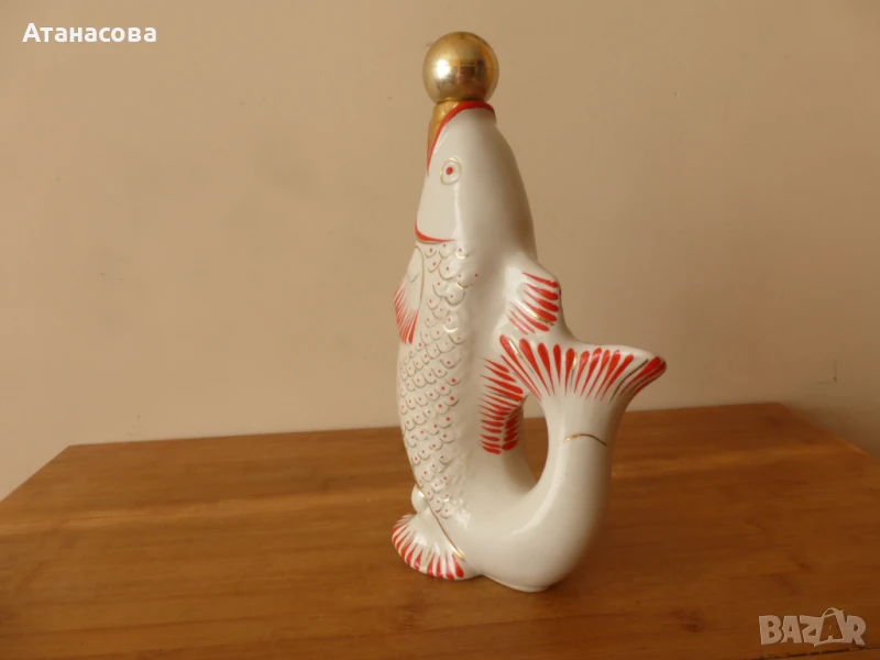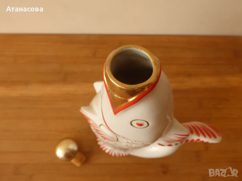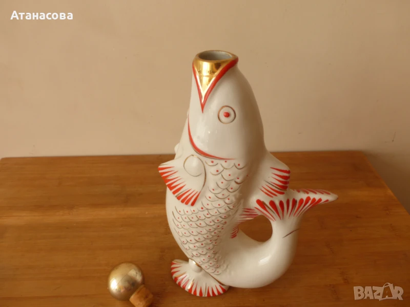 Порцеланов сервиз за алкохол с форма на риби Производство Полонски Завод за Художествена Керамика "ЗХК Полонне", СССР, Украйна