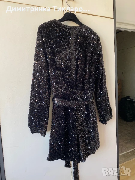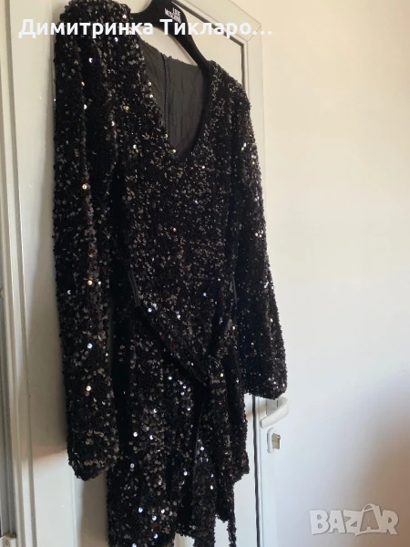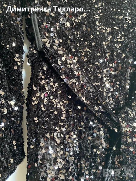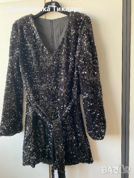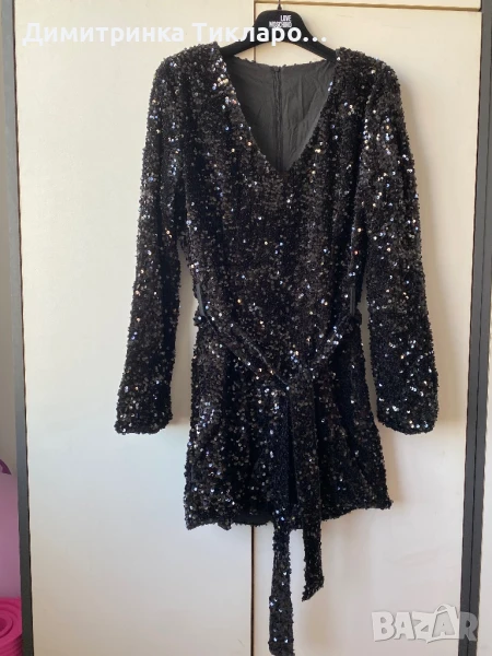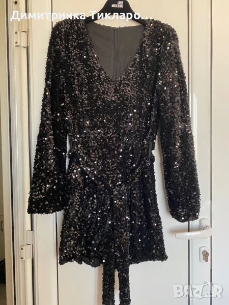 Дамски парти гащеризон , с паети , черен цвят , колан ,цип на гърба , размер М, дълъг ръкав