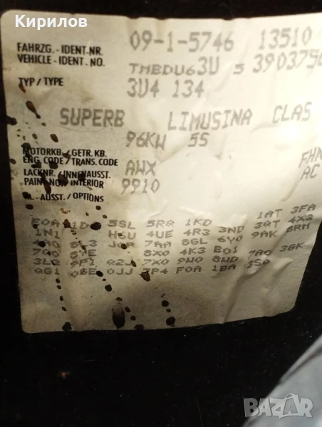 Двигател за Skoda Superb AWX 96 kW / 131 HP 1,9 TDI → Обява 51003516