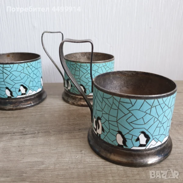 Подстакани за чаши с дизайн на пингвин, СССР, посребрени → Обява 51004397