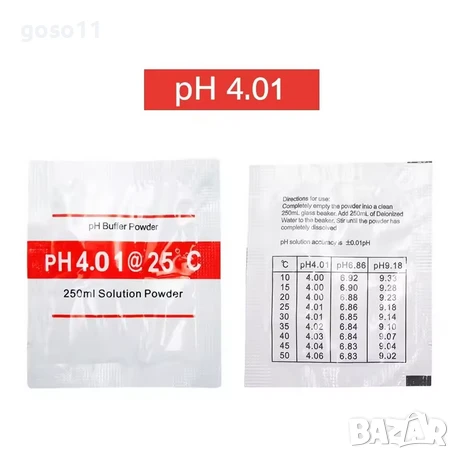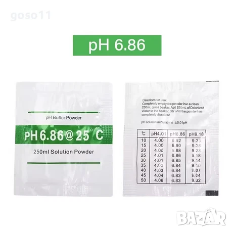 след добавяне на вода. Подходящ за калибриране на всеки тип ph метър. Всяка опаковка може да подготви 250 мл стандартен разтвор.