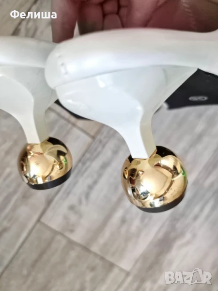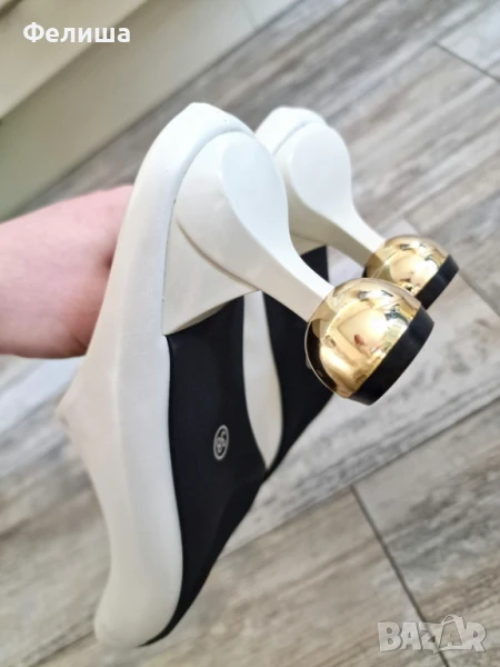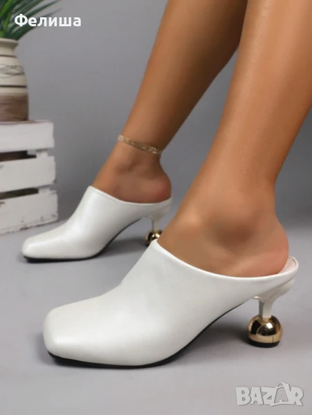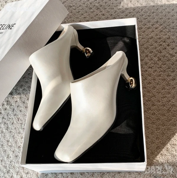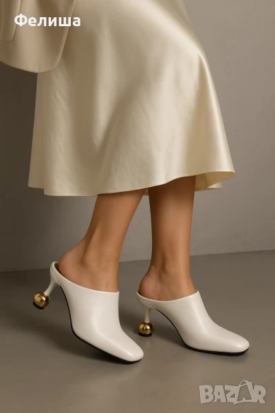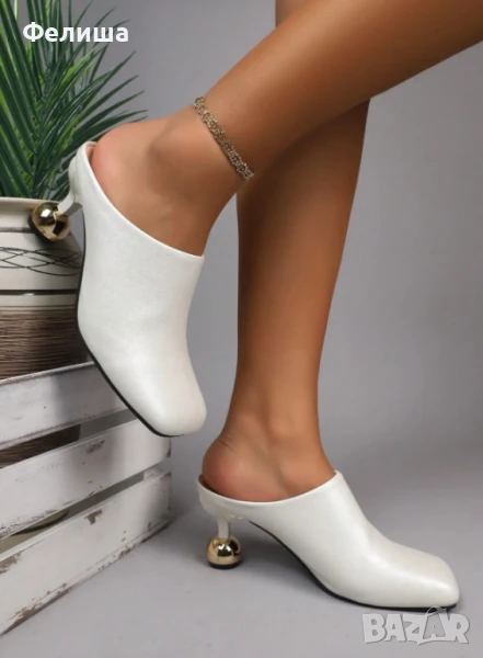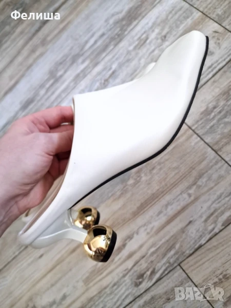 Дизайнерски Мюли Обувки в Цвят Нежна Ванилия със Златен Ток Топче → Обява 51005827