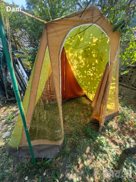 Продавам употребявана,но запазена немска палатка.Приблизителни габаритни размери 3,5х2,5м.,спално помещение 2,2х2,2м.