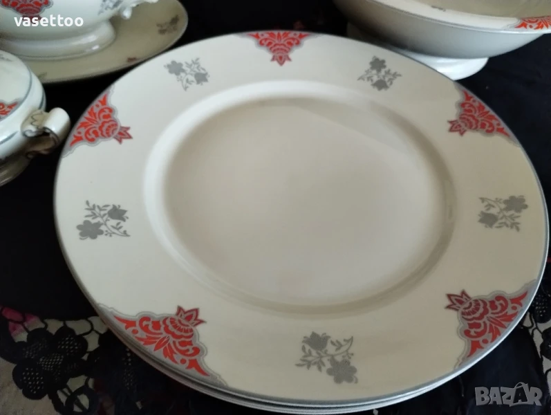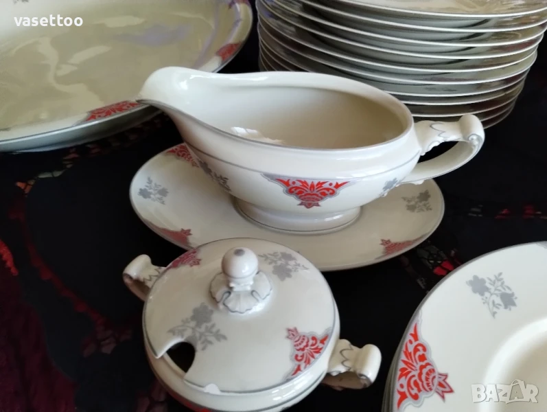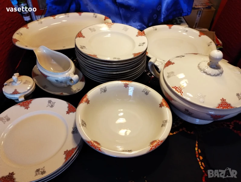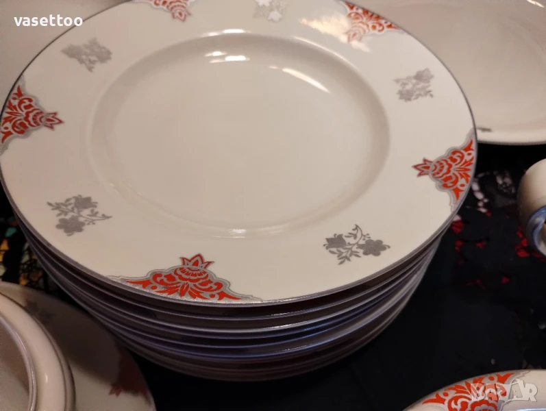 Много стар сервиз за хранене от фин качествен порцелан със сребърен кант.Включва: 1.11 броя чинии за супа 3.5/25.5 см.