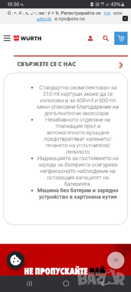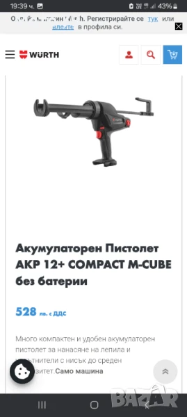 Wurth AKP 12 COMPACT Акумулаторен пистолет за силикон → Обява 51007447