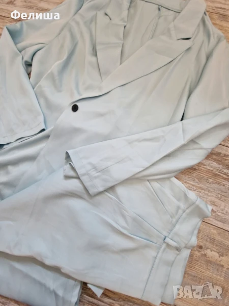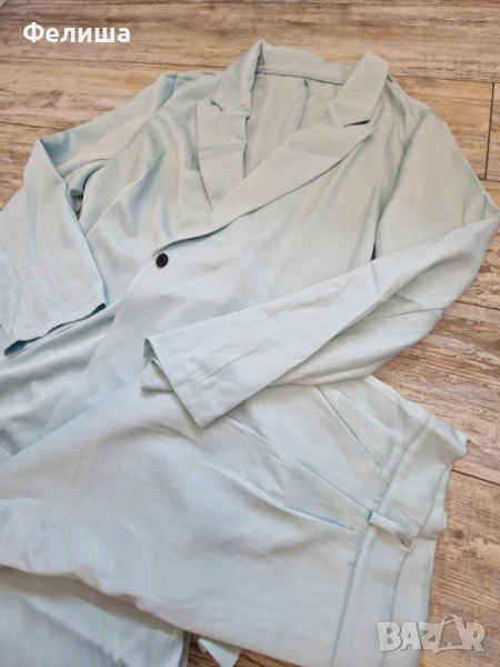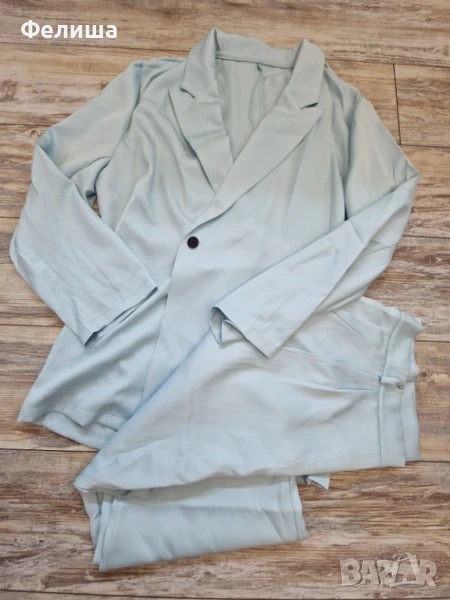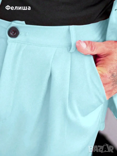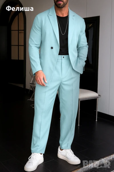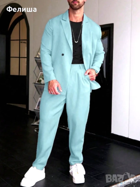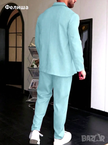 Мъжки Спортно Елегантен Небрежно Модерен Костюм Сияйно Бледо Синьо Сако+Панталон - КОМПЛЕКТ!
