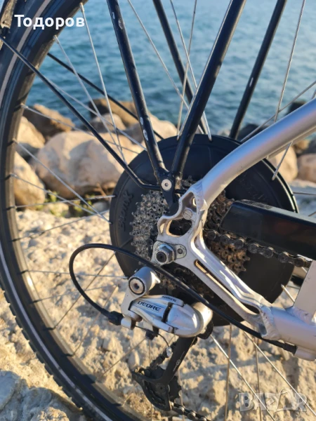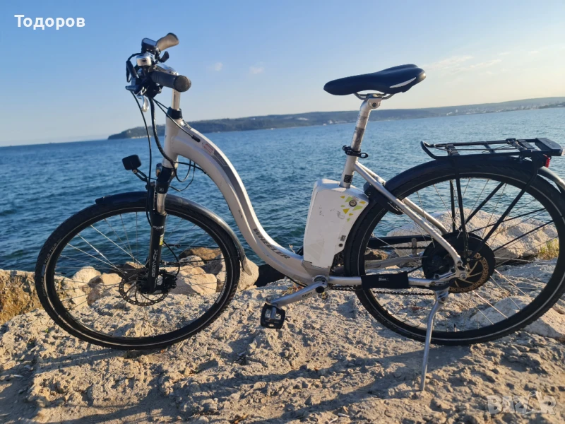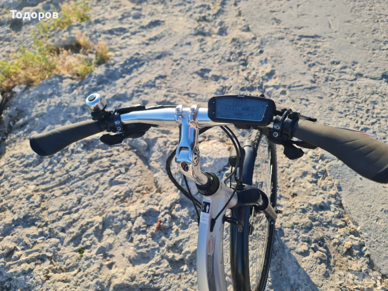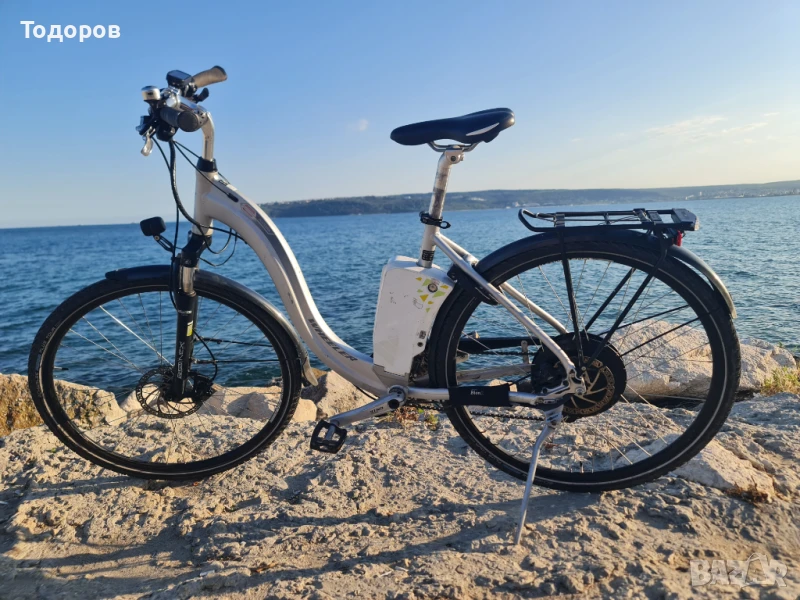 Велосипедът е софтуерно отключен и подпомага до 40 км в час.Велосипедът е много запазен. 28 цола, гуми Швалбе със защита против спукване почти нови. Само те се 150 лв. Чупещо кормило, позволяващо промяна на ъгъла за максимален комфорт. Команди, скорости Shimano Deore, хидравлични дискови спирачки Tektro Auriga, лед фар Supernova E3 6s(200 лв), амортисьорна вилка SR Suntour NRX, италианска седалка на Selle Royal!!!. Велосипедът си заслужава. РАЗМЕР 48 см, подходящ за хора с височина 159-178 см. Аз съм 185 см, но поради големия ход на колчето на седалката го карам спокойно. Удоволствието от карането му и усещането за свобода е неописуемо! ЦЕНА КАТО НОВ - НАД 3200 ЕВРО!!!
