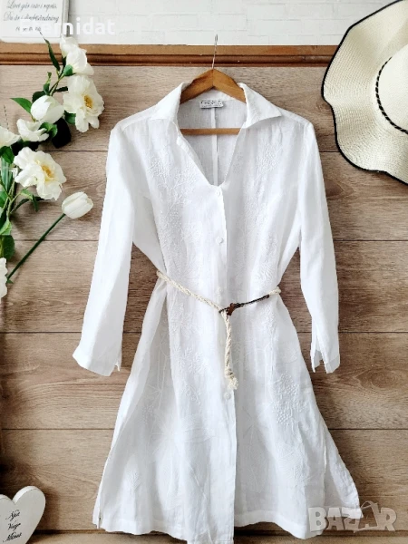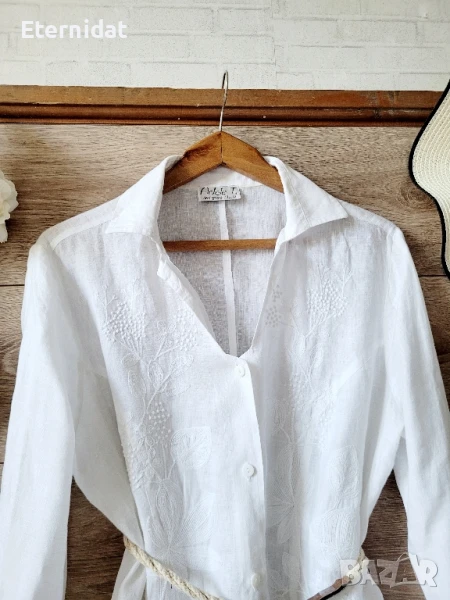 Дълга бяла риза с бродерии лен → Обява 51010008