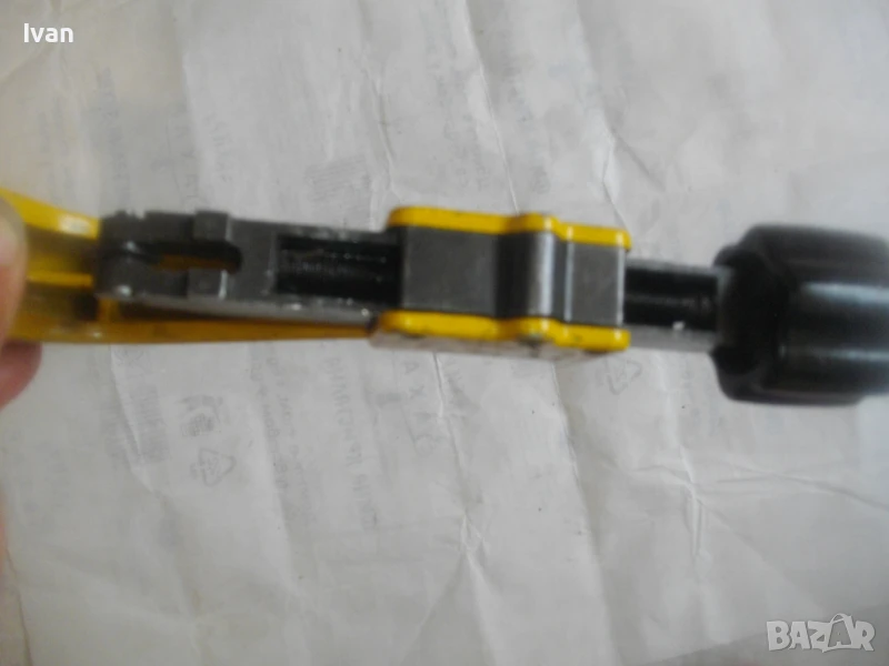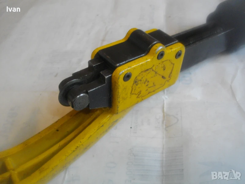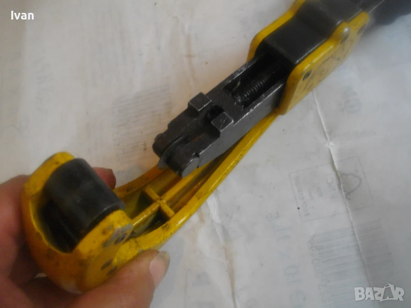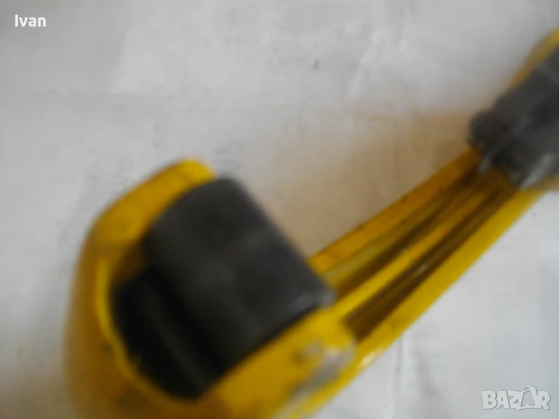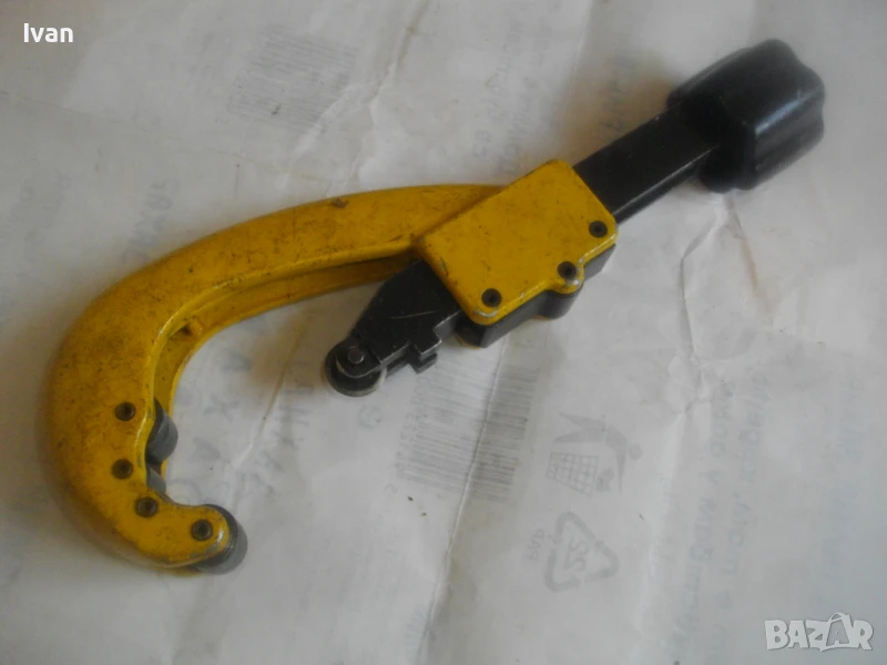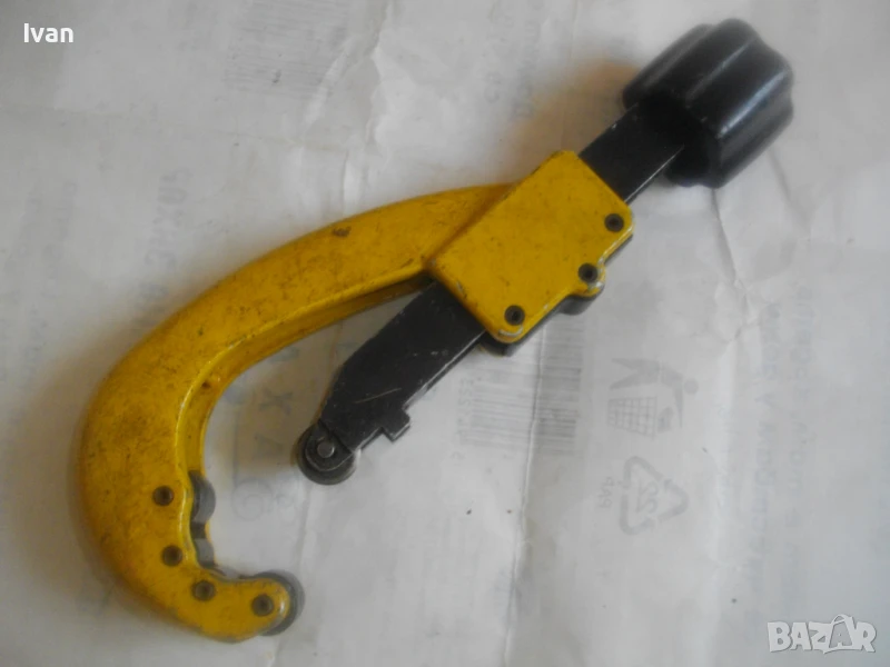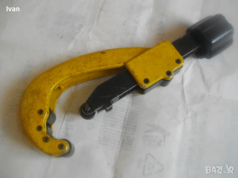 тръборез. Марка и модел - REMS Ras Cu-INOX за рязане на медни, тънкостенни неръждаеми, алуминиеви тръби с дебелина да стената до 4 мм. Инструмента е за тежки натоварвания. Професионален. Капацит на рязане тръба - диаметър ф 6 мм - ф 64 мм. Тръбореза е със запазен външен вид и отлично техническо/работно съсотяние. Без забележки. Резеца е без никакви наранявания. От инструментална закалена стомана е. Магазинната цена на модела тръборез към август 2023 г. в България е 421 лв.