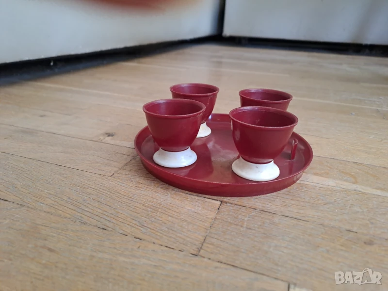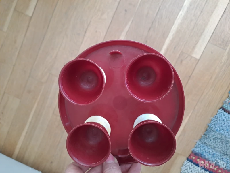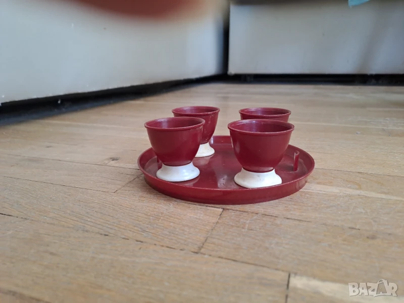 Поставка за яйца за 4 броя в цвят вишнево червено и бяло. Отговарям на съобщения тук, изпращам с куриер с отстъпка, преглед или лично предаване в София.