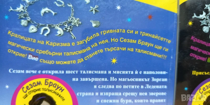 Кралицата на Каризма е загубила гривната си и тринайсетте магически сребърни талисмана на нея. Но Сезам Браун ще ги открие! Вие също можете да станете търсачи на талисмани! Присъединете се към Сезам Браун в приключението ѝ в чудния свят на Каризма, където тя открива нови приятели.