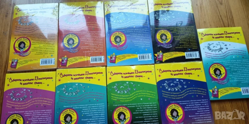 Във всяка книжка от поредицата ще намирате по един ценен талисман. Щом съберете всичките, ще можете да сглобите гривната на кралица Чаровна и да върнете силата ѝ, за да спасите Каризма.