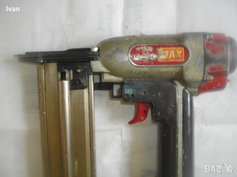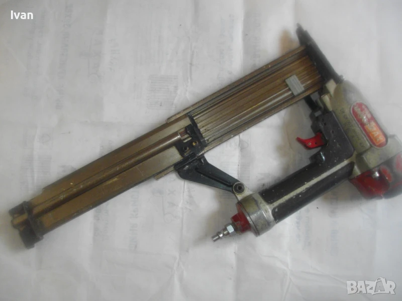 ОПИСАНИЕ на голям пневм.такер с дуралуминий пълнител - MAX - за пирони до 50 мм- 299 лв. Много голям пневматичен , масивен професионален тапицерски такер за пирони размер до 50 мм дължина.