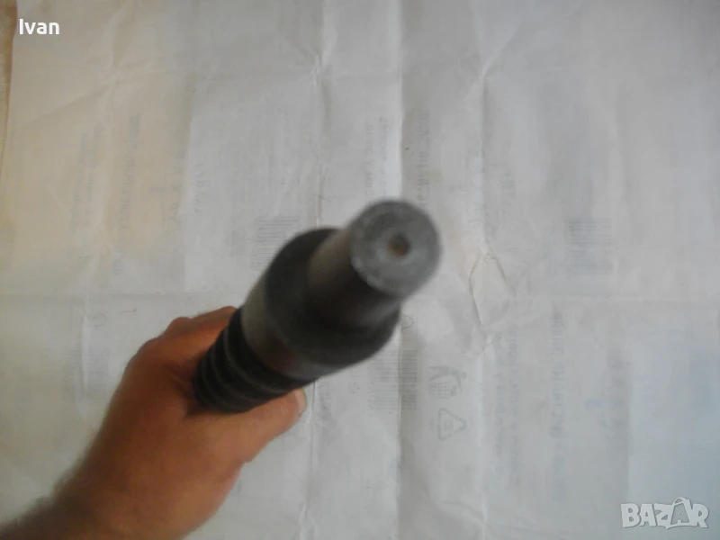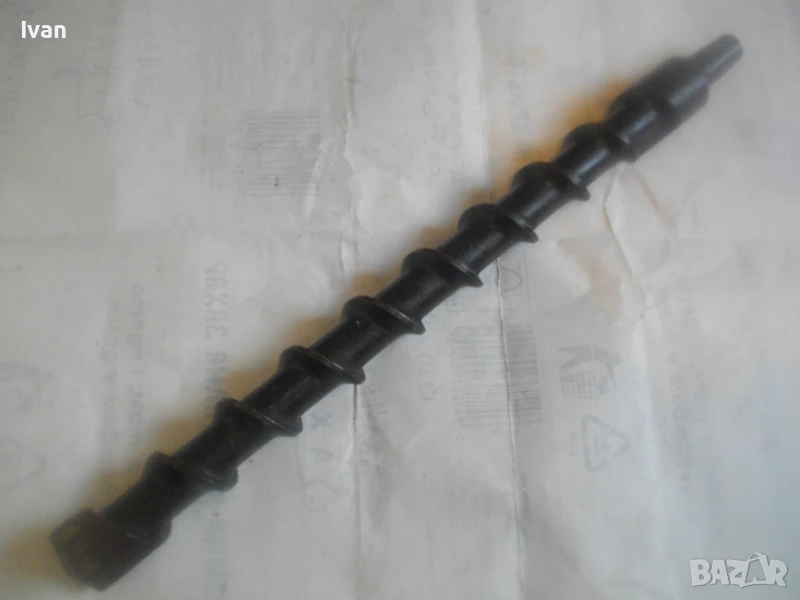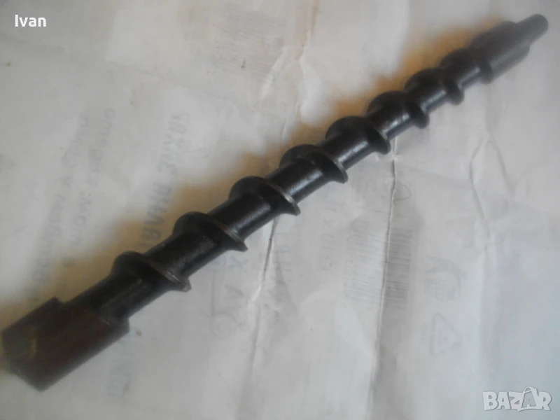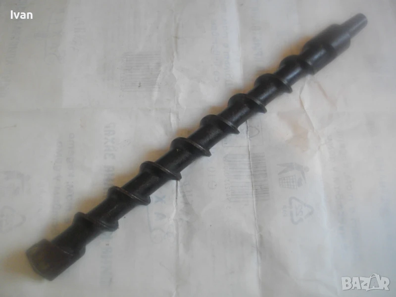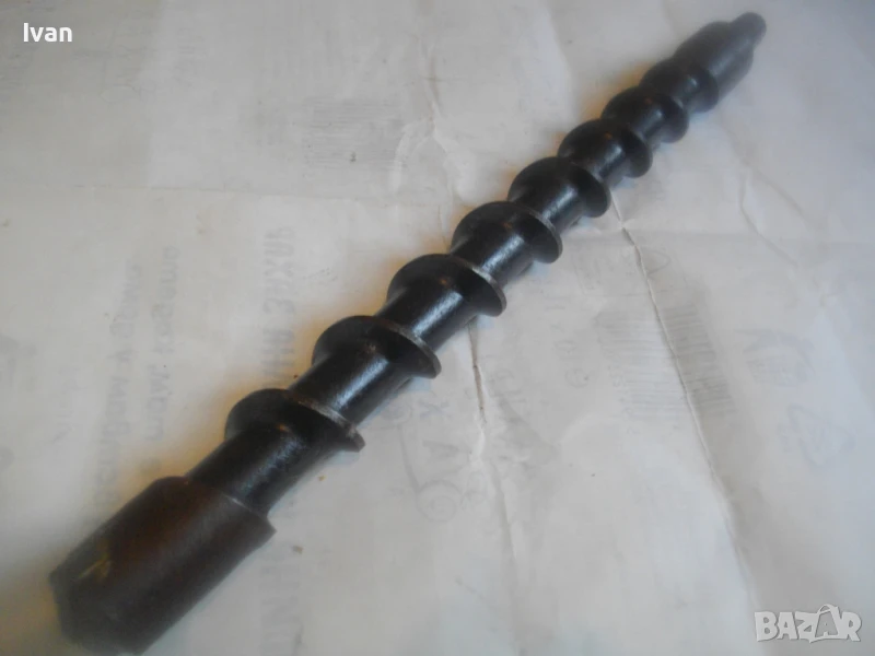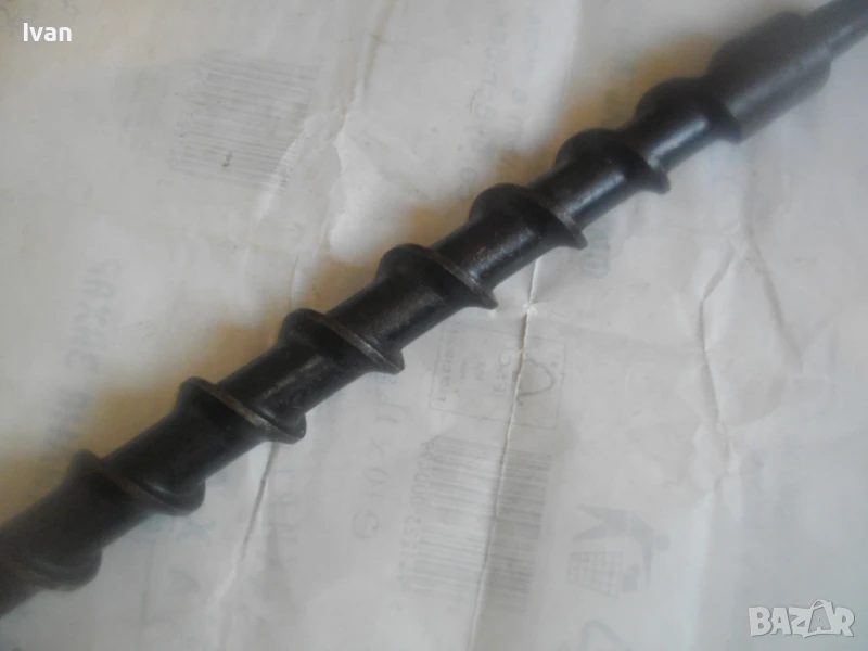 Цена на свредлото/бургия размер ф 35 мм - 420 мм дължина - 99 лв. Голяма видирана бургия-свредло,за къртене и пробиване на бетон, скали, камък - размер ф35мм.Свредлото е немско оригинално производство.Почти нова е,един-два пъти е ползвана за кратко.Видиевата глава няма никакво износване.Размера на свредлото,упоменат на него е 35х350мм.Цялостната дължина е 42 см,само пробивната част е с дължина-37см.Спирабните улей са дебели,с широчина между тях-3см,8 броя улей.Самата глава за пробиване е с дължина-2 см.Свредлото е твърдосплавно стоманено,с хром-ванадиум покритие.Захвата на опашката е за стар тип перфоратор-захват кръгъл,леко скосен конус.