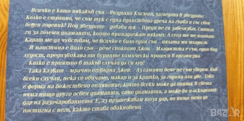 "– Всичко е като някакъв сън – въздъхна Кисмин, загледана в звездите. – Колко е странно, че съм тук с една-единствена дреха на гърба и със своя беден годеник! Под звездите – добави тя. – Преди не ги забелязвах. Смятах ги за големи диаманти, които принадлежат някому. А сега те ме плашат. Карат ме да чувствам, че всичко е било един сън – цялата ми младост.