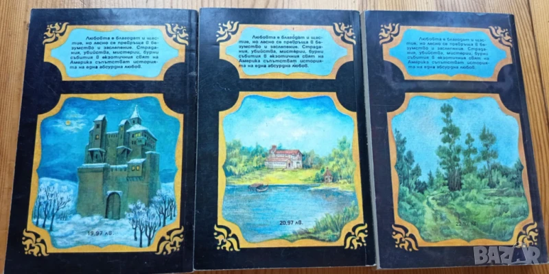 Любовен роман от поредицата "Знаменити романи". Трите тома са издадени през 1992г от изд. Калпазанов-Габрово. Съдържат 1092страници, меки корици, отлични книжни тела, леки забележки по корицата, на снимката се виждат. Цената е за трите тома в комплект. По отделно всеки том се продава по 4 лв