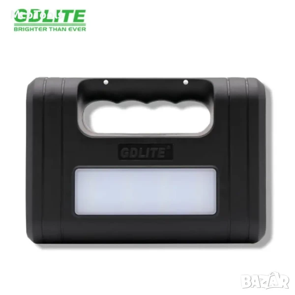 Устройството е с удобна дръжка и с вградена голям фенер и с USB вход.