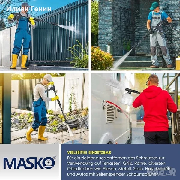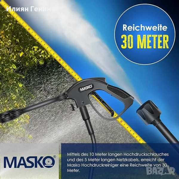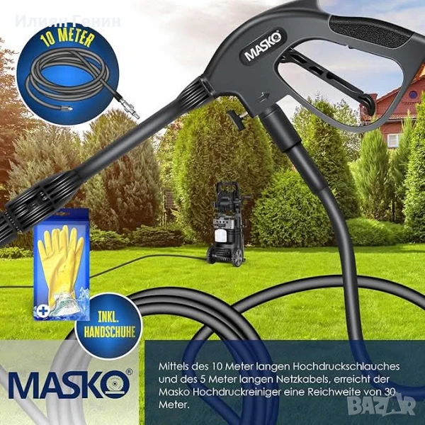 MASKO® Водоструйка 2200 вата 165 бара 450 л/ч, с макара за маркуч 10 м маркуч - 200.00лв.