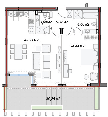 + Архитектура: Големи квадратури на апартамента и помещенията в него. Голяма тераса за летни вечеринки или релакс
