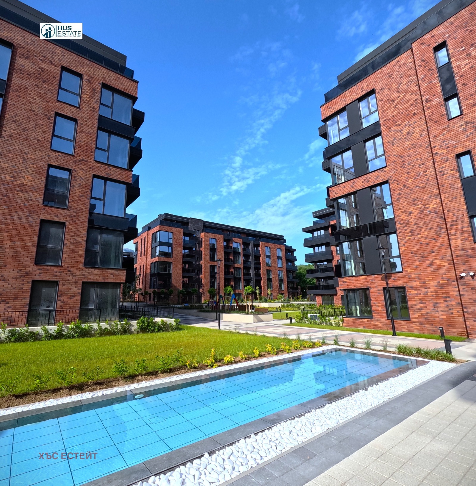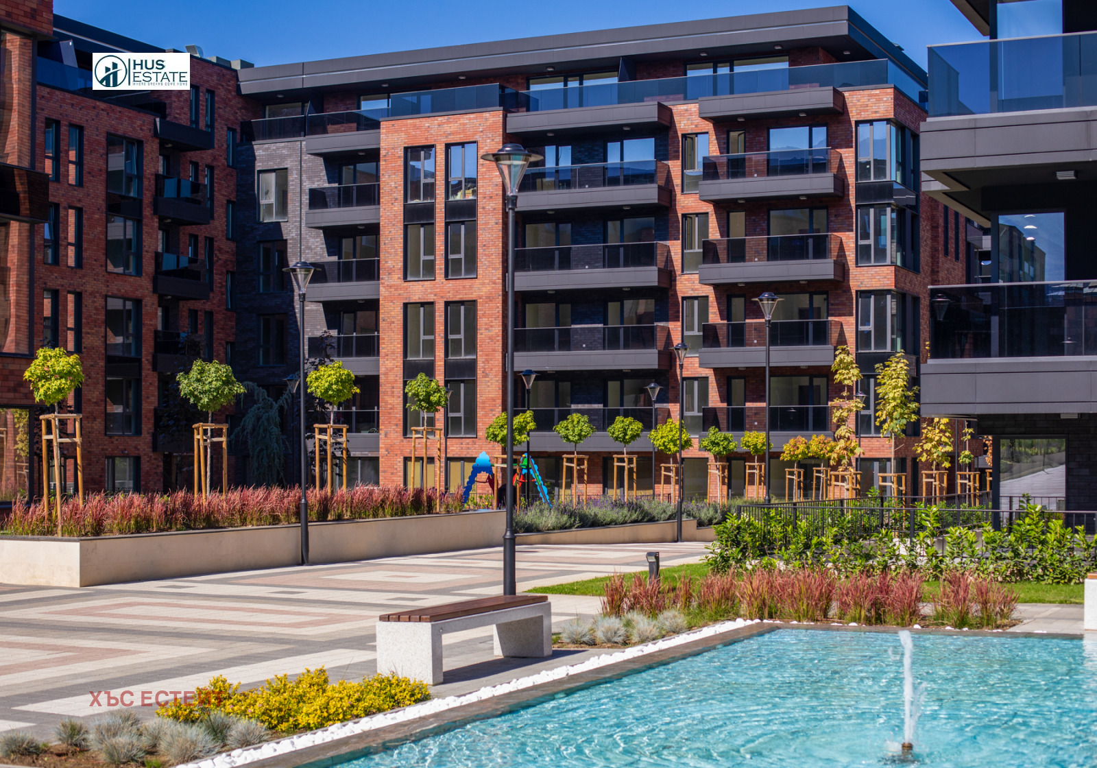 Вътрешният двор на комплекса е над 30 декара, изцяло пешеходен, в който са разположени общо 9 детски площадки, за различни възрасти.