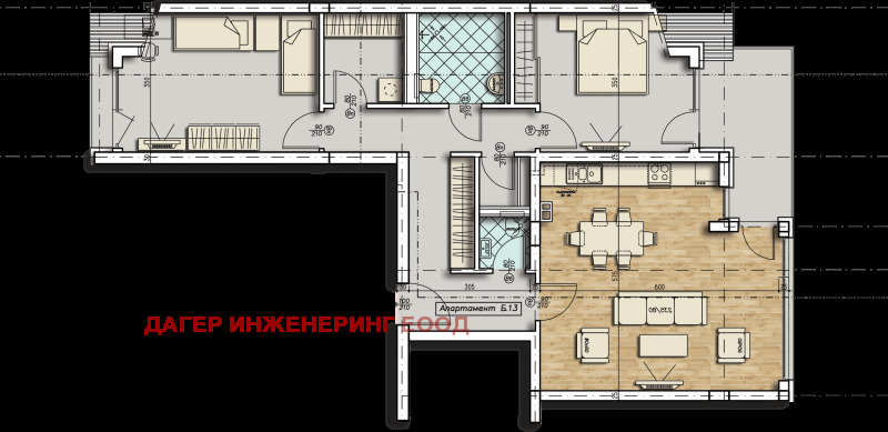 ДАГЕР ИНЖЕНЕРИНГ ЕООД Ви представя тристаен апартамент в новострояща се луксозна жилищна сграда на ул. Нишава и ул. Дедеагач.