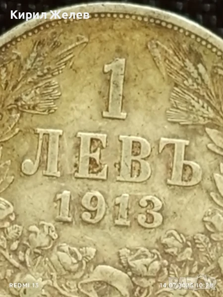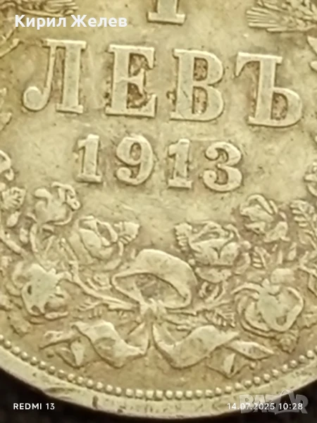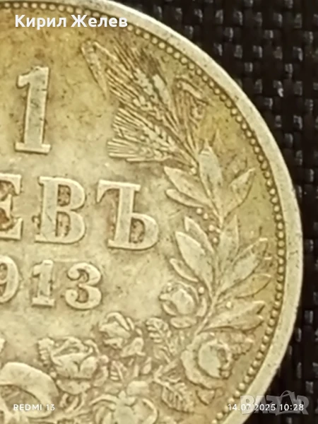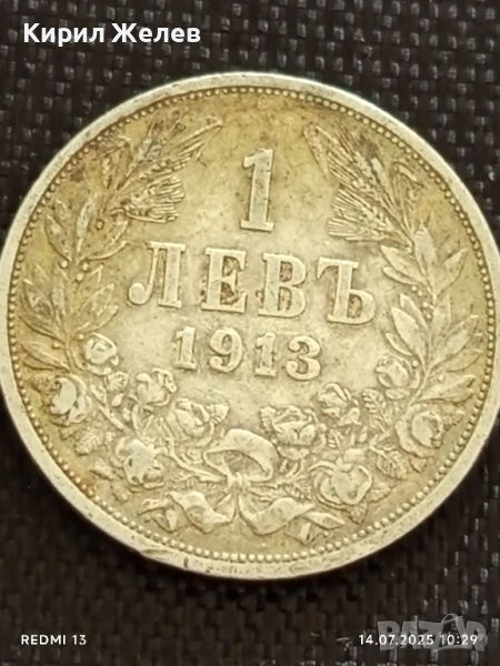 Сребърна монета 1 лев 1913г. Царство България Цар Фердинанд първи за КОЛЕКЦИЯ 41934