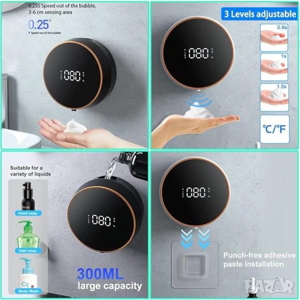Вграден с подобрен интелигентен инфрачервен сензор за движение, вече не е необходимо да докосвате дозатора за сапун, просто поставете ръката си под сензора на 3-6 см, той ще се задейства автоматично и ще ви дозира сапун за 0,25 секунди, което помага на вашето семейство да се предпази от микроби и да поддържа здравословен живот.