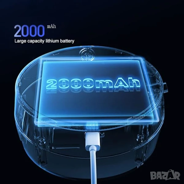 Зарежда се веднъж, използва се до 10800 пъти, литиева батерия с голям капацитет 2000mAh, дълго време в режим на готовност до 4 месеца, поддържа бързо зареждане тип-C 3.0, водоустойчива IPX5, удобен и екологичен.