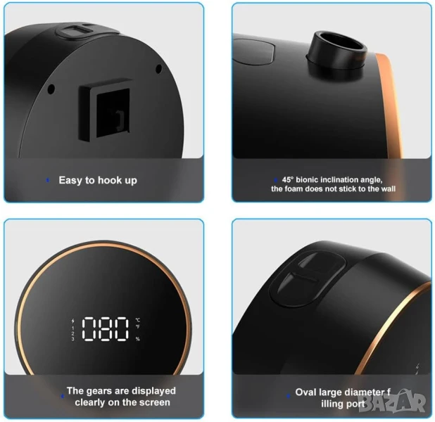 Има три нива за регулиране на количеството пяна, които могат да отговорят на различните нужди на възрастни и деца от 0.6, 1, 1.5 сек. Може да се показва на цял екран, показвайки оставащата мощност и вътрешната температура.